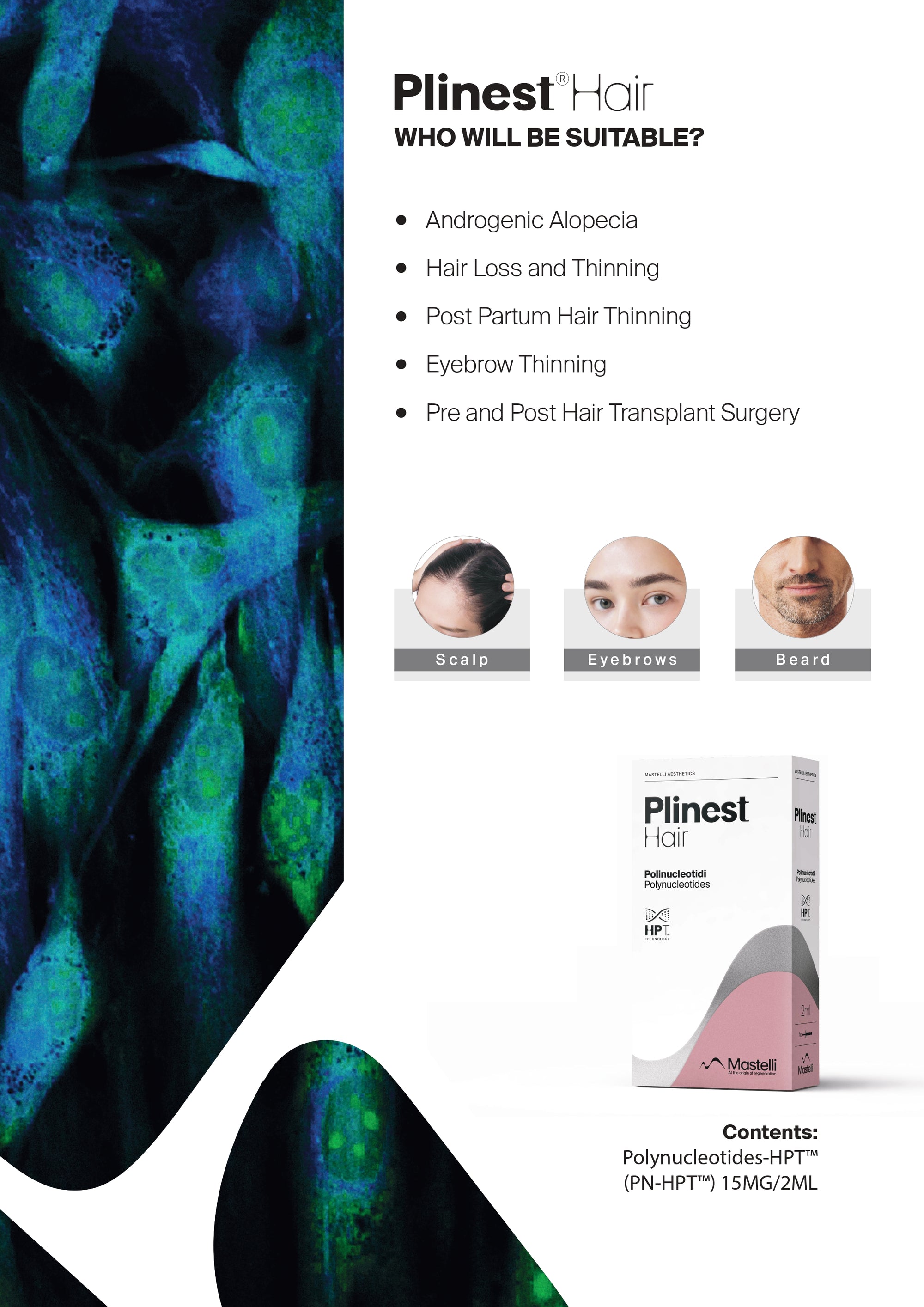 Plinest®Hair enhance the scalp's extracellular matrix and improve the environment for hair growh, leading to thicker, stronger hair.