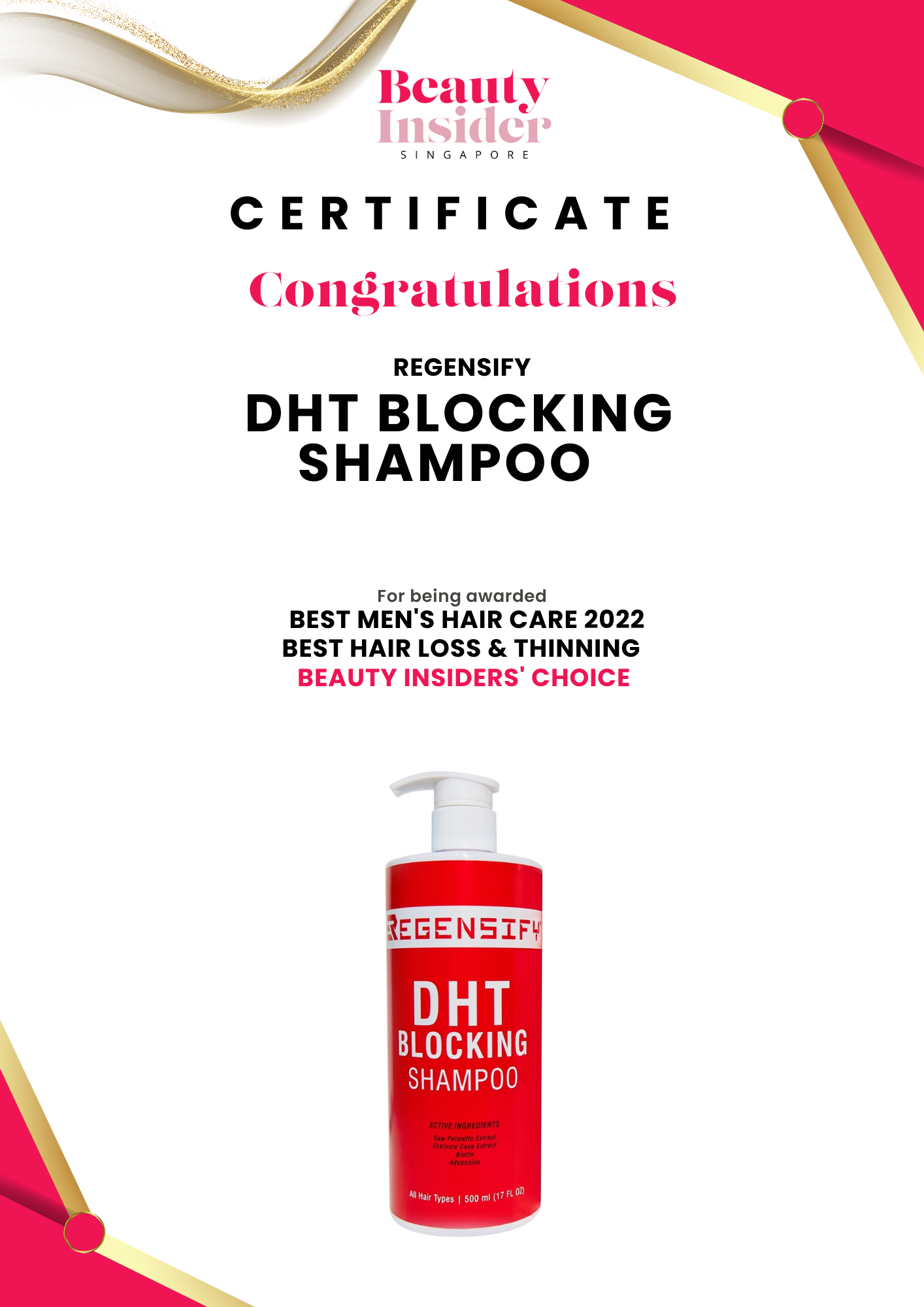 The DHT Blocking Shampoo regenerates the scalp conditions with clinically proven ingredients that block DHT and stimulate the hair follicles to grow. Saw Palmetto and Ecklonia Cava Extracts block DHT, the root cause of hair loss. Adenosine stimulates hair growth by boosting ATP production while Biotin rejuvenates hair health for improved hair quality. The shampoo cleanses and nourishes the scalp by unblocking dirt and oil in hair follicles, thus restores the hair’s elasticity and strength.